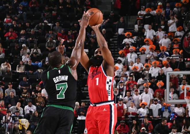 首節(jié)比賽,凱爾特人火力全卡占據主動權,布朗手感火熱,帶隊單節(jié)轟出42分,第一節(jié)比賽結束,綠軍42-28領先快船14分。次節(jié)比賽開始,克塔沖擊籃下一個滑翔暴扣幫助綠軍先下一城,沃爾什底角埋伏,三分線外接球就投張手就有,小瓊斯利用節(jié)奏變換上籃穩(wěn)穩(wěn)命中,克塔跳步到籃下強起輕松得手,懷特蘭蝶劃云游身步上籃靈動拿下兩分,小瓊斯的超遠三分果斷出手空心入網,科林斯踏雪無痕搶到進攻籃板,二次進攻對抗上籃2+1打成。上半場快船這邊哈登小卡狀態(tài)一般,靠著科林斯超高效率苦撐,而綠軍則是布朗和懷特二人雙管齊下,繼續(xù)帶隊主導局面。