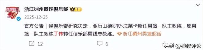 浙江主帥由于開局階段遭到1勝4負,浙江主帥管理層選擇讓丁偉退居二線,擔任總教練的職務,隨后,浙江戰(zhàn)績開始反彈,5勝1負重返正軌。