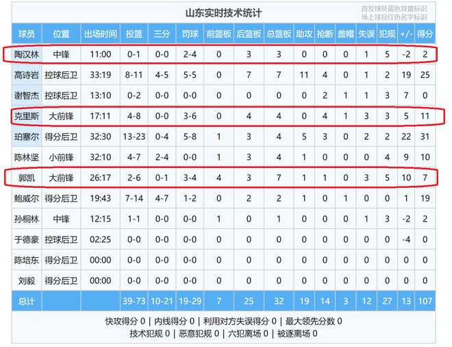 山東隊(duì)球員陶漢林、郭凱各自因?yàn)?次犯規(guī),被罰下場。外援克里斯因?yàn)槌缘絻纱渭夹g(shù)犯規(guī),被直接驅(qū)逐出場,取消了本場比賽的資格。山東隊(duì)主教練,因?yàn)椴粷M意裁判的吹罰,一直想要打裁判,被直接奪權(quán),驅(qū)逐出場。