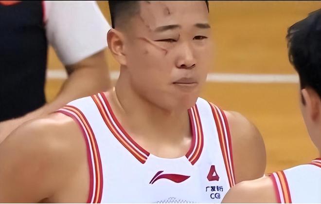 直到第二節(jié)最后階段,賀希寧才重新上場。此時的賀希寧,右眼紅腫,額頭上、臉上,特別是右眼左右,都有明顯的劃痕,右眼也是腫的只剩一條縫,對此,他在賽后采訪時說:“現(xiàn)場頭很暈”??梢?,受傷對他的影響有多大。