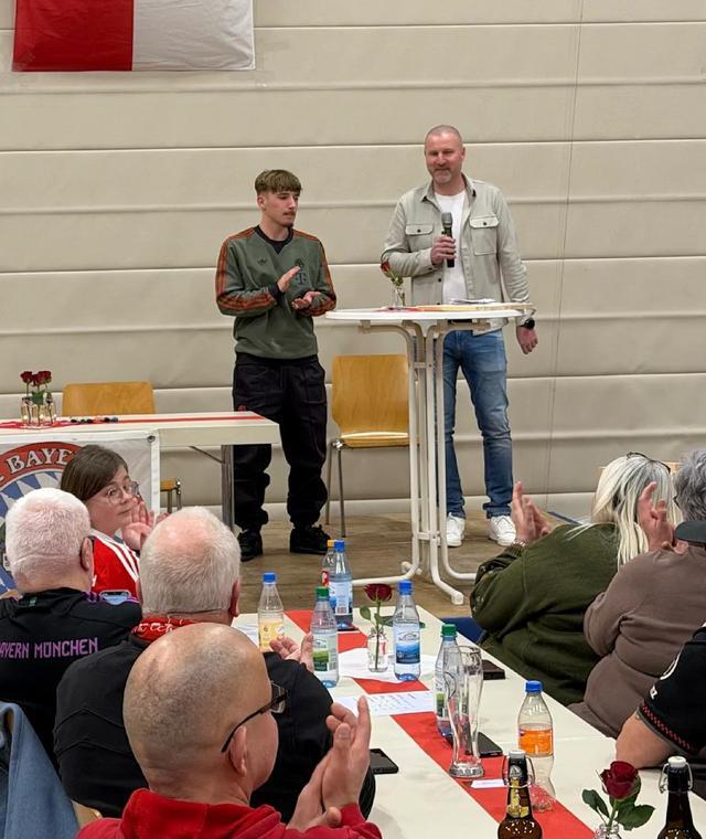 周日下午,倫納特-卡爾現(xiàn)身下弗蘭肯地區(qū)布爾格辛,出席“拜仁慕尼黑1980球迷會”活動?;顒拥攸c距離他位于弗拉默斯巴赫的家鄉(xiāng)僅約25分鐘車程。當這位拜仁新星走進這座擁有2300名居民的社區(qū)所租用的體育館時,現(xiàn)場約140名拜仁球迷以熱烈的掌聲和歡呼迎接他的到來。隨后,卡爾在舞臺上與球迷交流了約20分鐘。這位出生于下弗蘭肯的年輕球員在家鄉(xiāng)顯得輕松自然,面對球迷的提問始終保持坦率而真誠的態(tài)度。