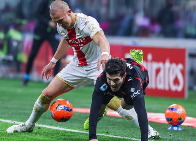 這場(chǎng)比賽熱那亞率先取得進(jìn)球??坡〔┰诘?0分鐘門前倒地?fù)屔淦崎T,送出助攻的是馬利諾夫斯基。下半場(chǎng)普利希奇進(jìn)球了,但因?yàn)槭智蚍敢?guī),被判無效。直到第92分鐘,AC米蘭才扳平比分。依靠角球機(jī)會(huì),萊奧頭球頂進(jìn),完成絕平!但之后巴爾泰薩吉禁區(qū)內(nèi)犯規(guī)送點(diǎn)。斯坦丘在98分鐘罰丟了點(diǎn)球,錯(cuò)失了絕殺的好機(jī)會(huì)。AC米蘭絕處逢生。最終的比分定格為1-1,AC米蘭狼狽戰(zhàn)平。