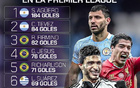 英超拉美球員射手榜:阿圭羅184球第1,希門尼斯63球升至第7